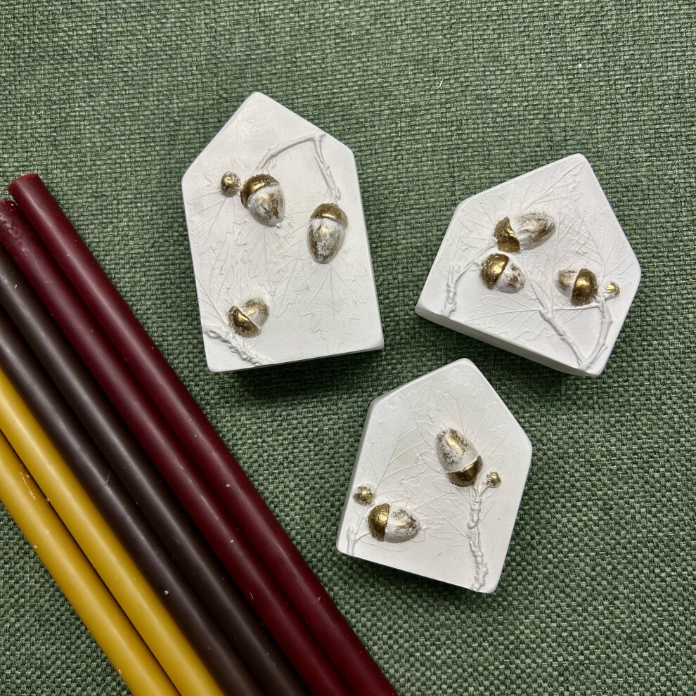 Набор из трёх подсвечников и шести свечей Дубочки золотые