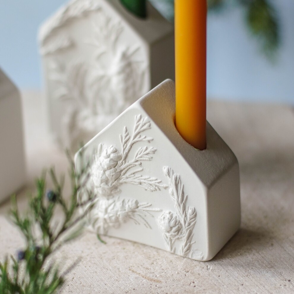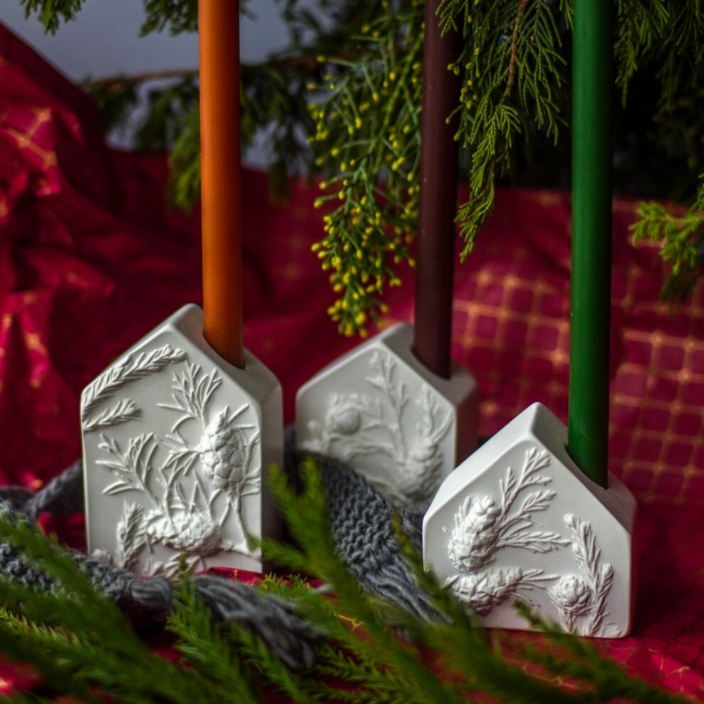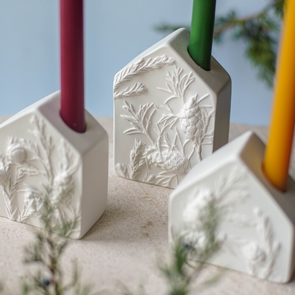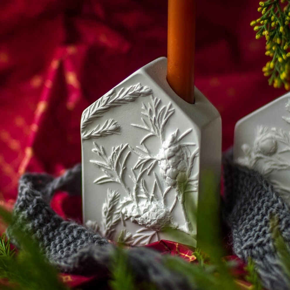 Подсвечники выполнены из высокопрочного гипса и покрыты матовым прозрачным лаком. С одной стороны ботанический барельеф, с другой - гладкая поверхность.