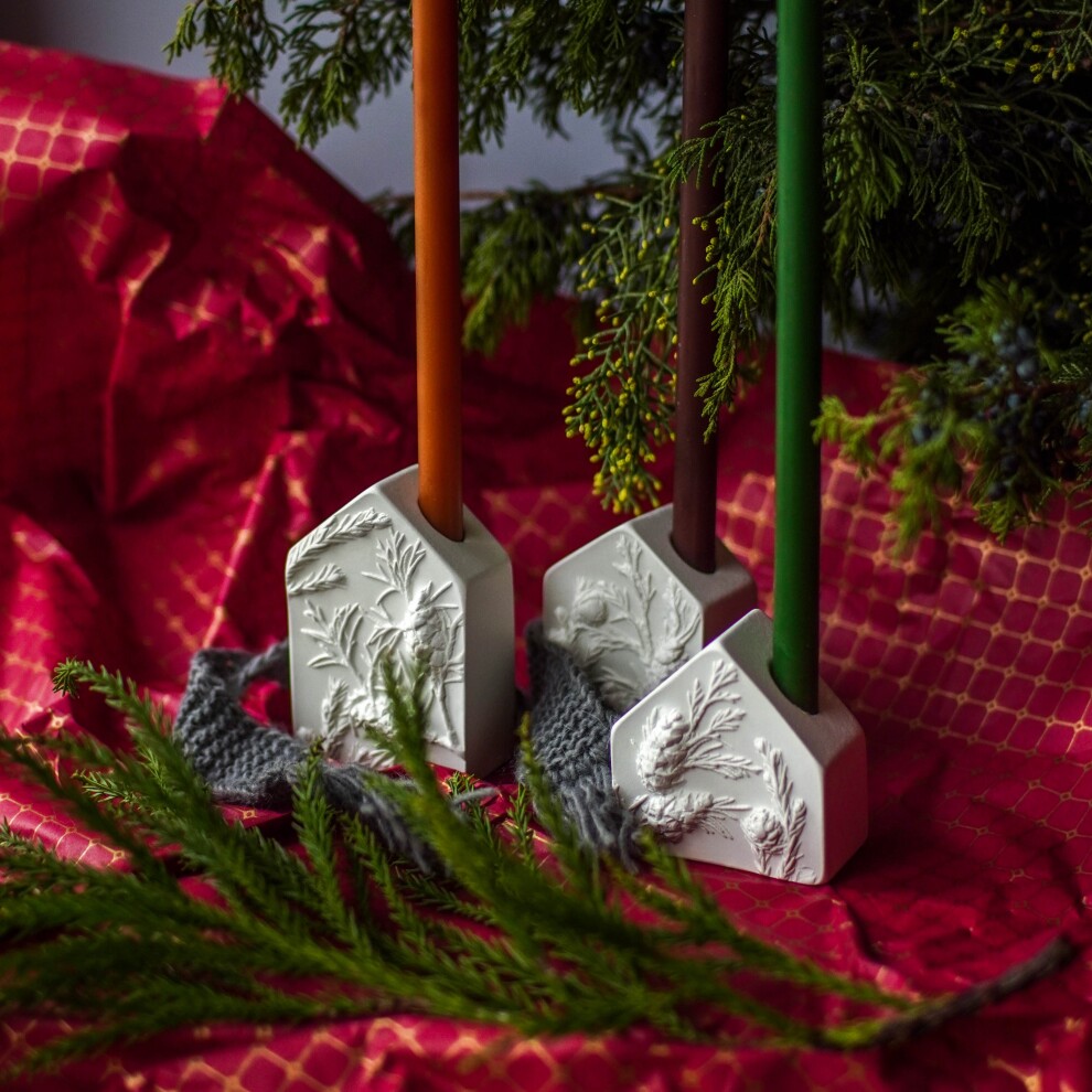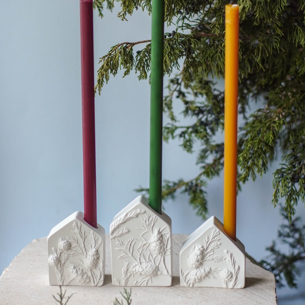 Набор из трёх подсвечников и шести свечей Хвойный лес