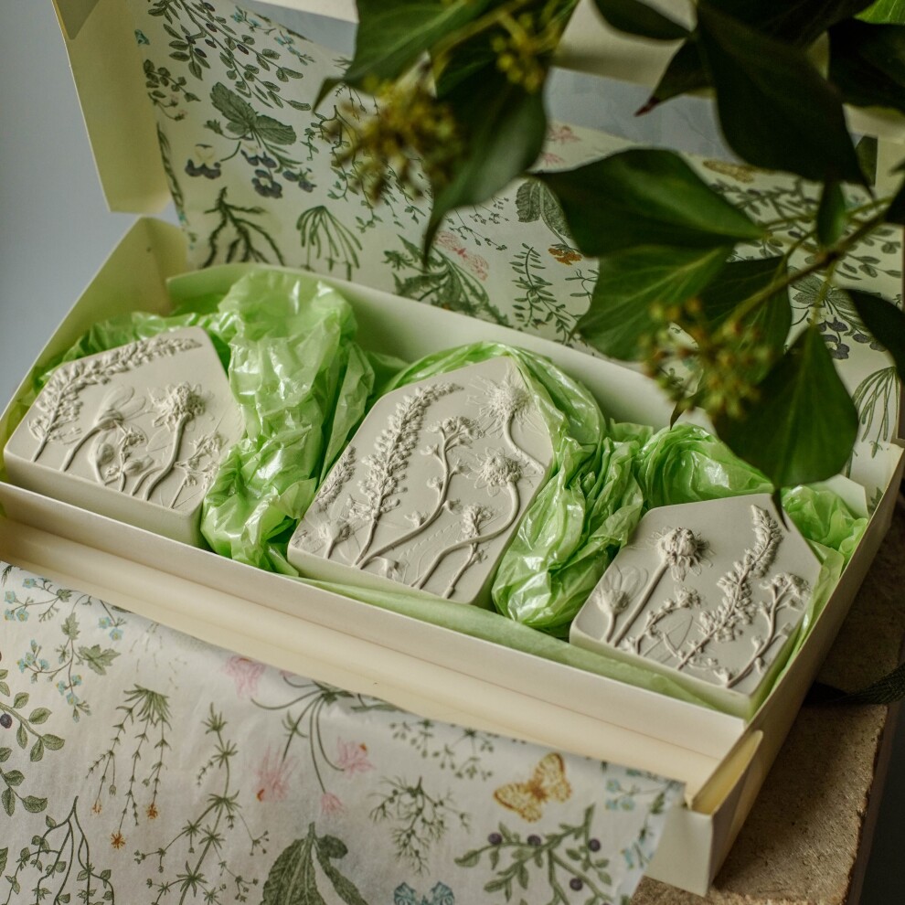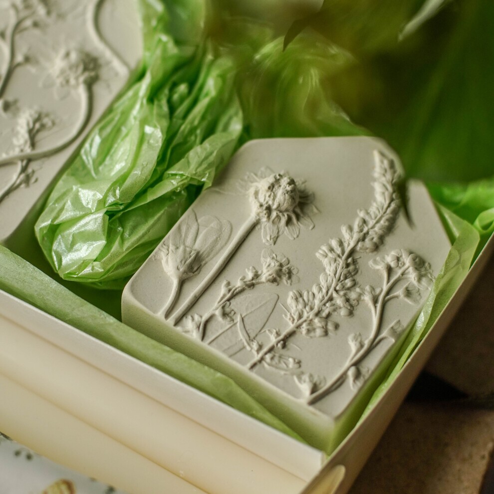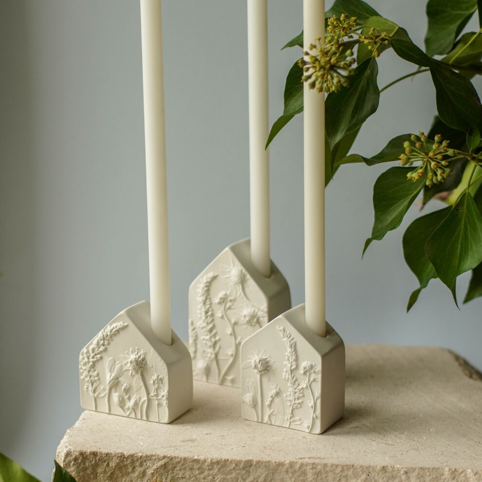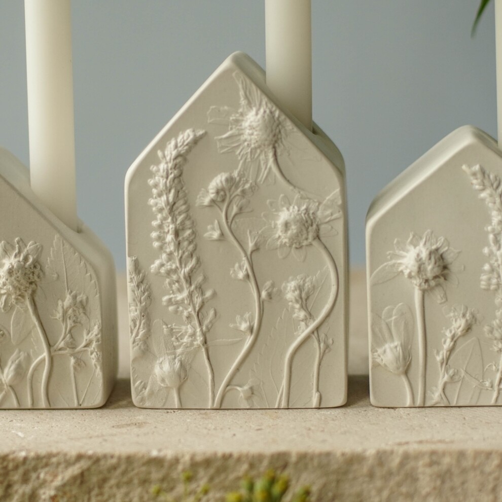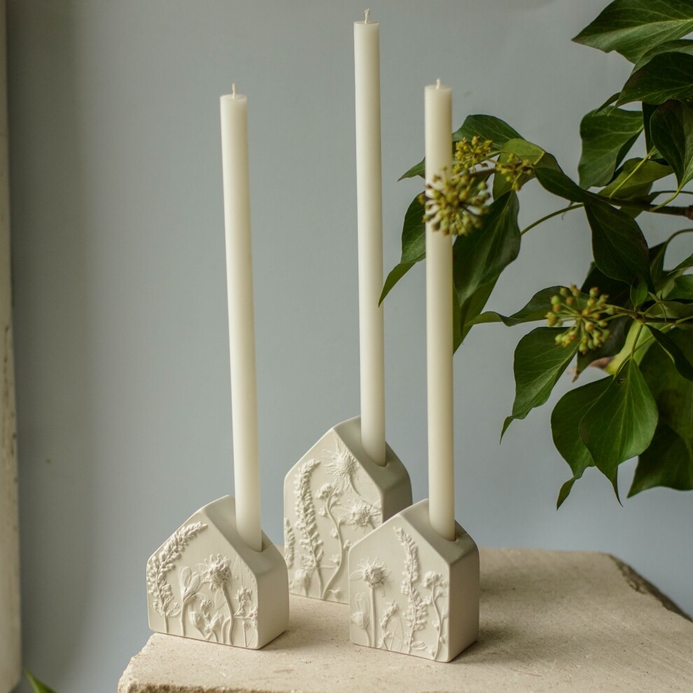 Подсвечники выполнены из высокопрочного гипса и покрыты матовым прозрачным лаком. С одной стороны ботанический барельеф, с другой - гладкая поверхность.