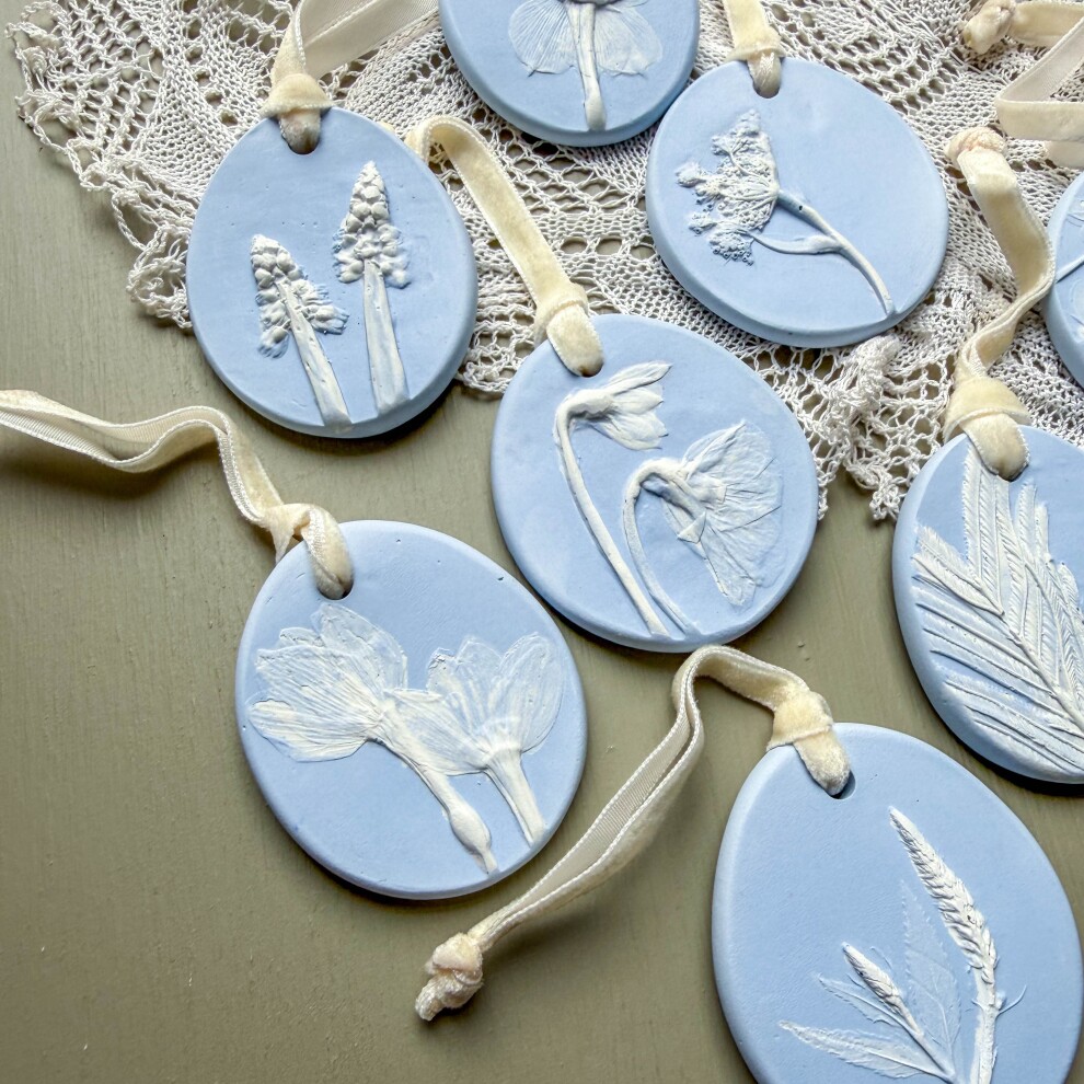 Уютный набор подвесок с оттисками настоящих растений - кипариса, можжевельника, криптомерии, сосны и дуба!