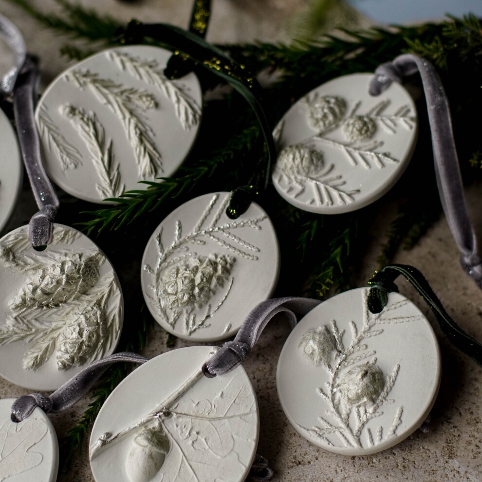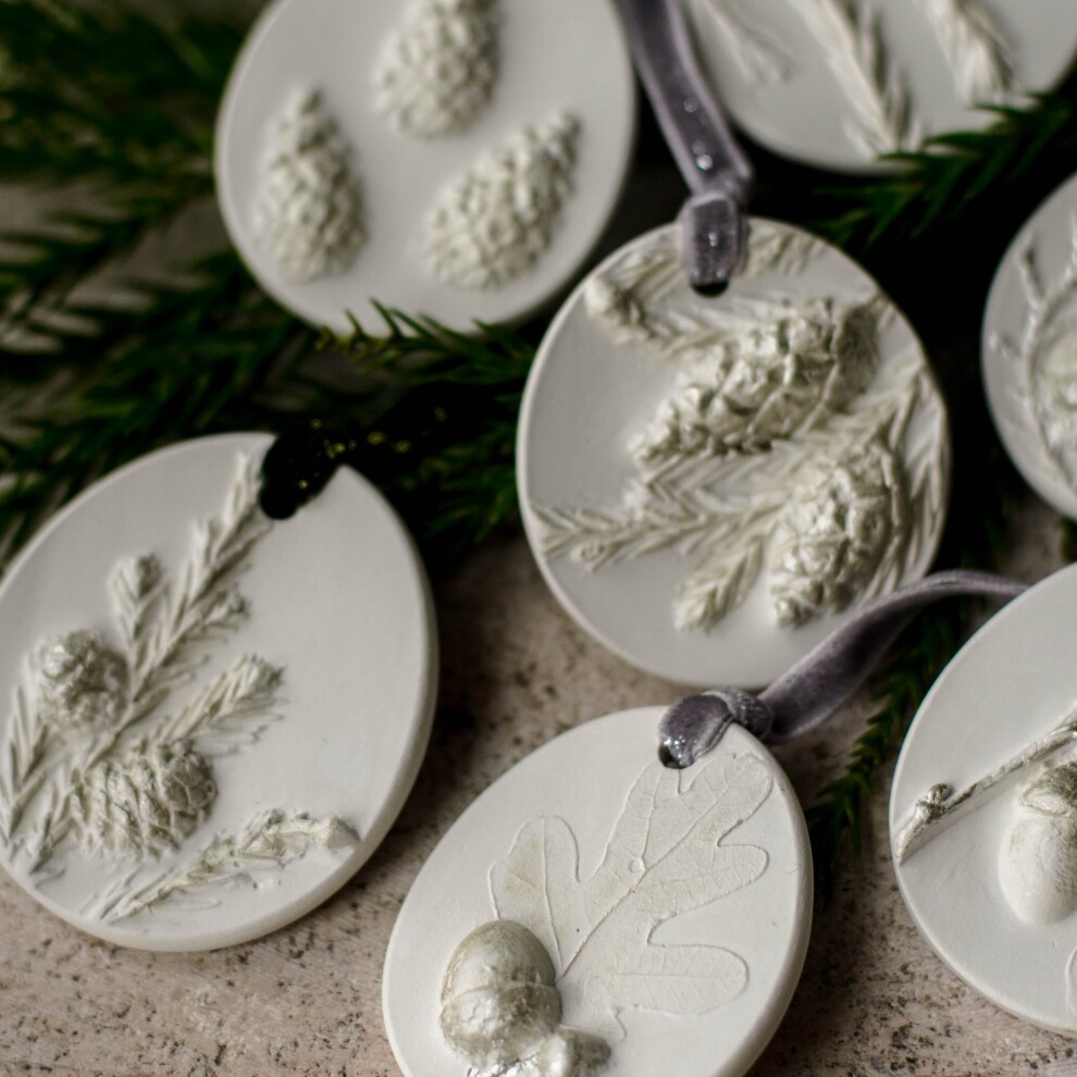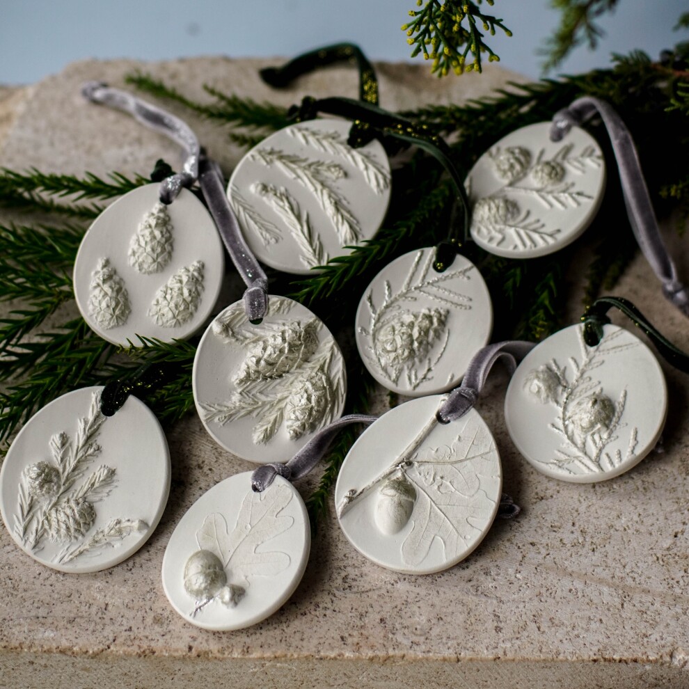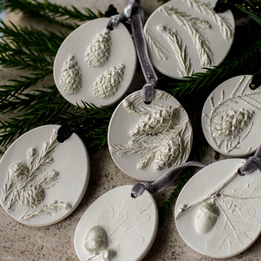 Уютный набор подвесок с оттисками настоящих растений - кипариса, можжевельника, криптомерии, сосны и дуба!