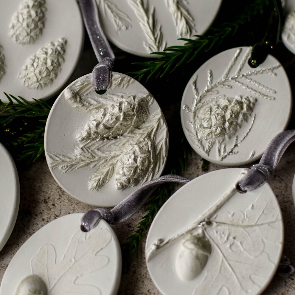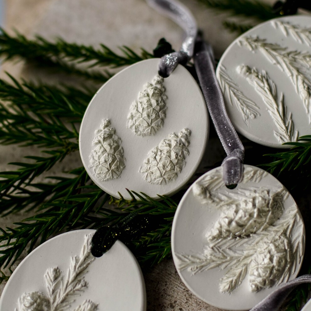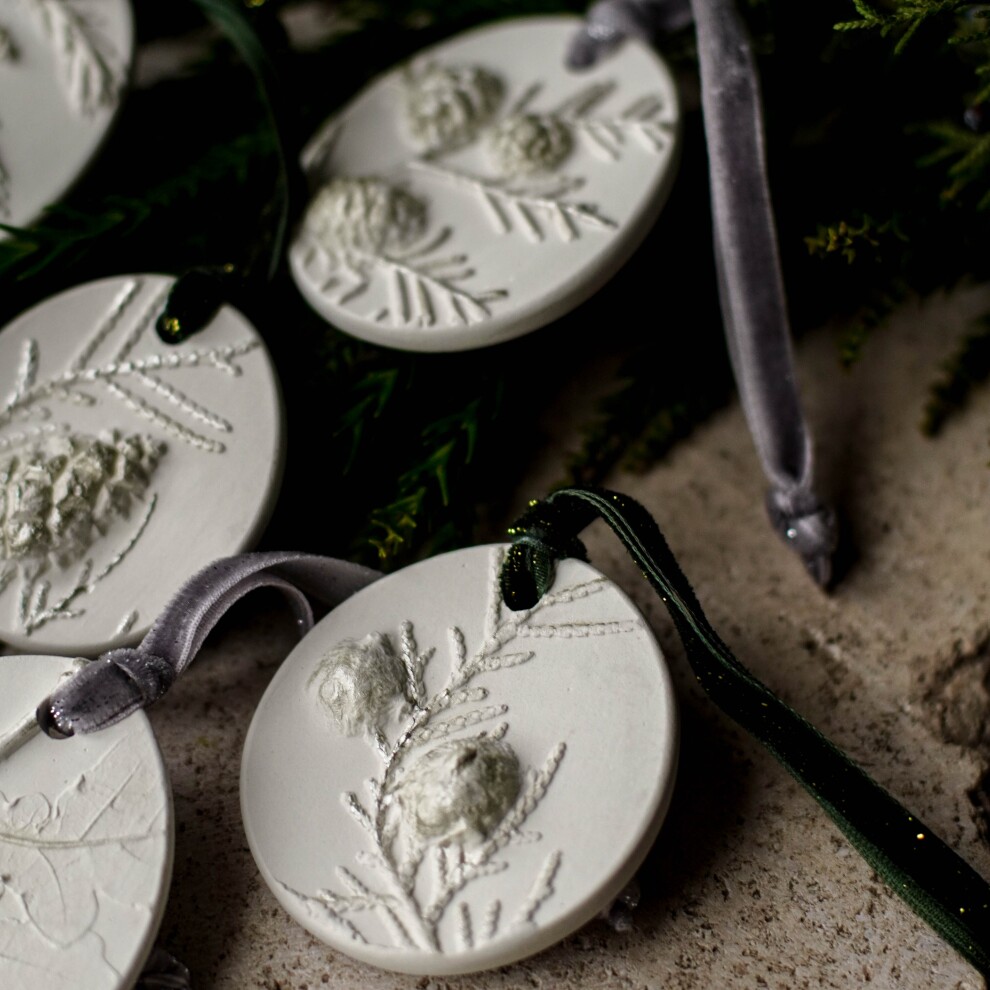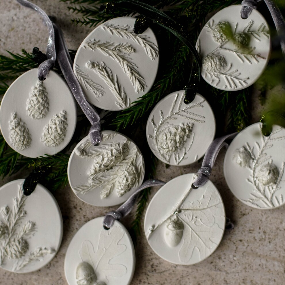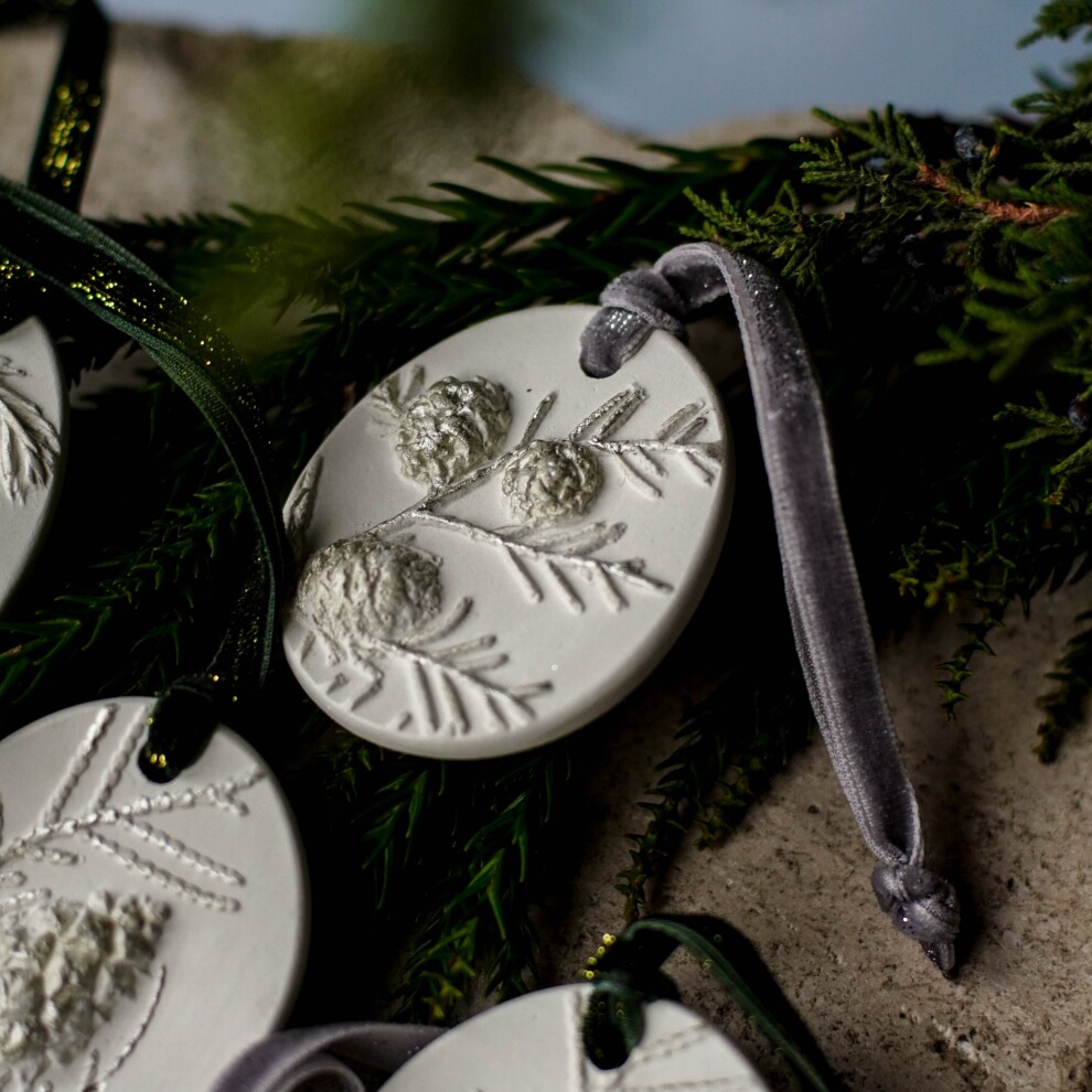 Уютный набор подвесок с оттисками настоящих растений - кипариса, можжевельника, криптомерии, сосны и дуба!