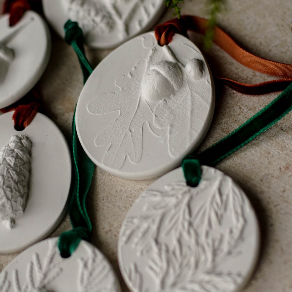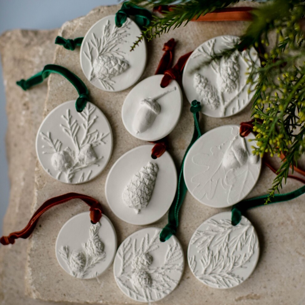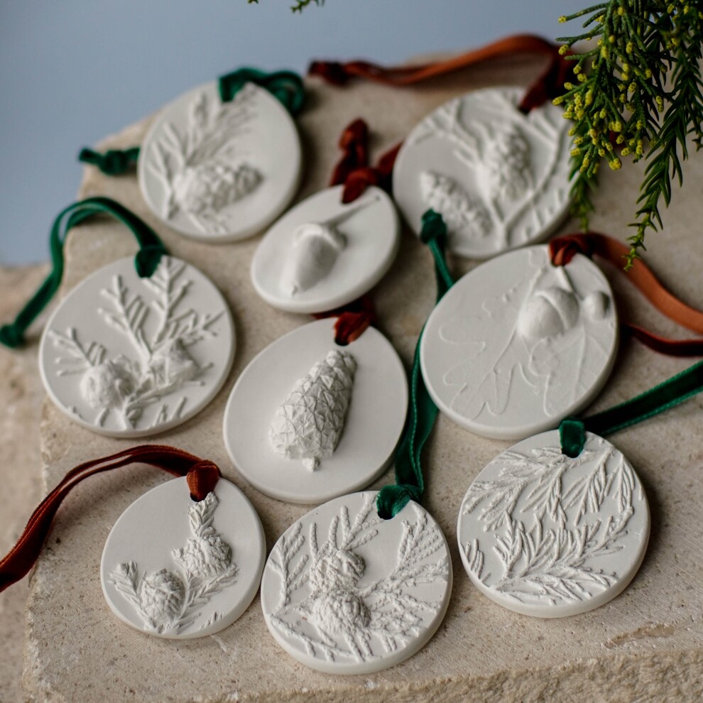 Уютный набор подвесок с оттисками настоящих растений - кипариса, можжевельника, криптомерии, сосны и дуба!
