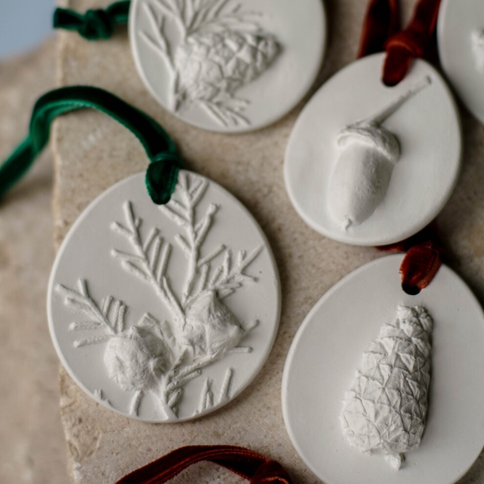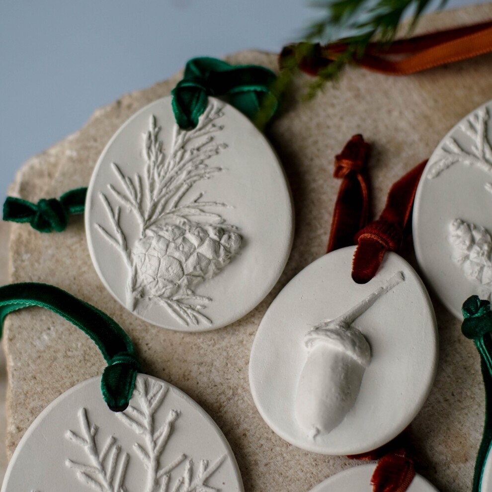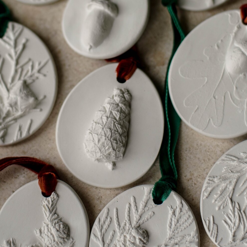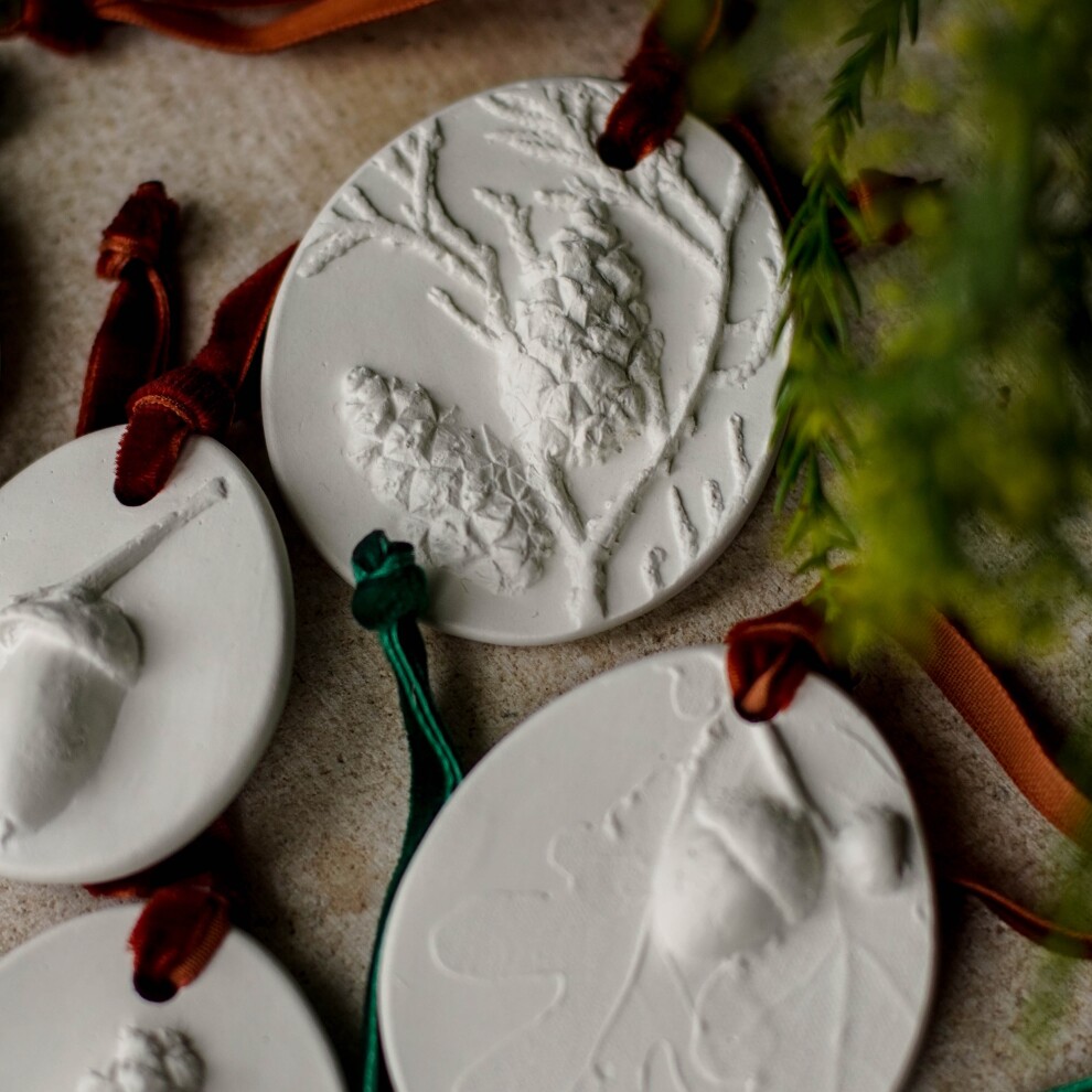 Уютный набор подвесок с оттисками настоящих растений - кипариса, можжевельника, криптомерии, сосны и дуба!