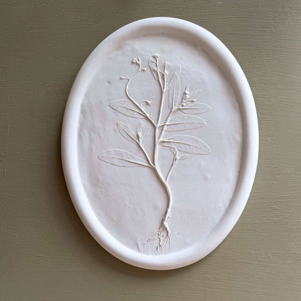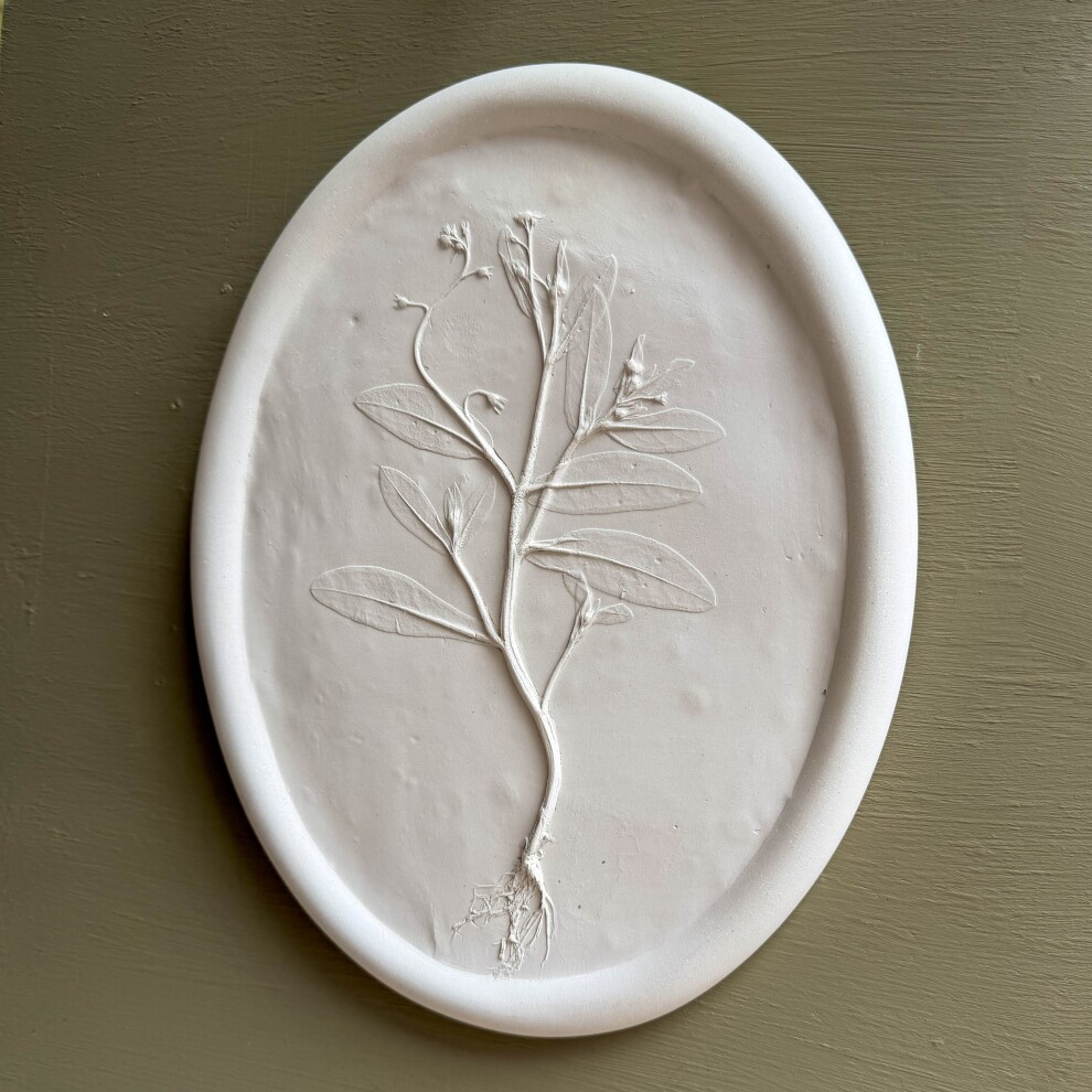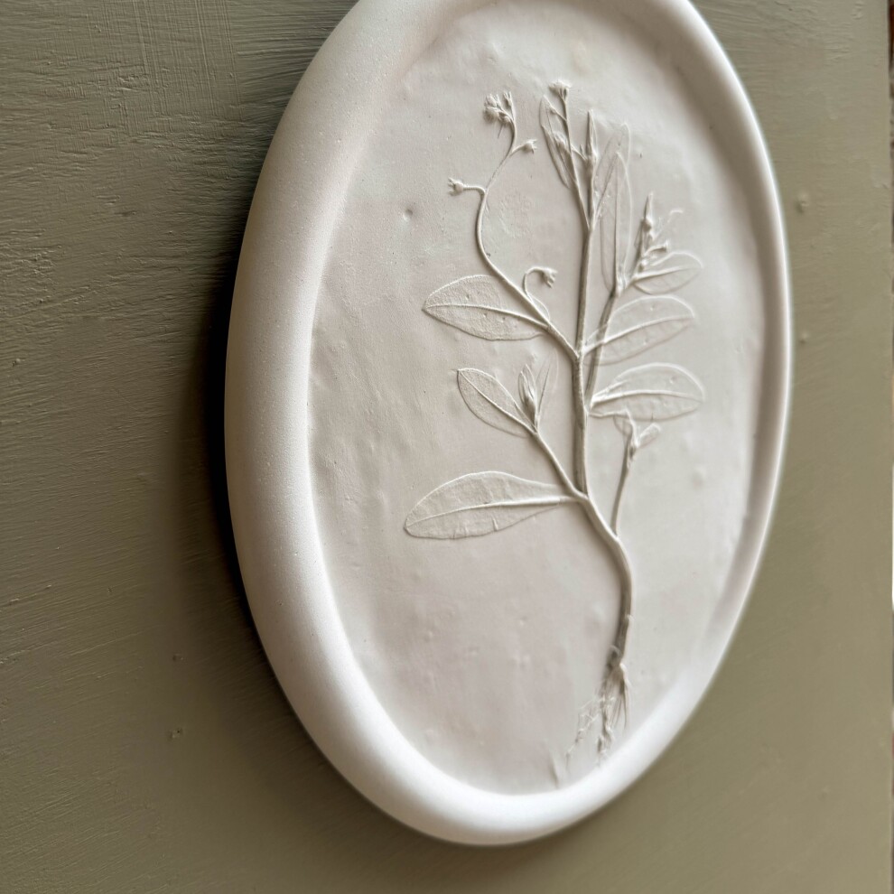 Интерьерное панно, выполненное в технике "Ботанический барельеф" с оттиском настоящих растений с бархатной лентой.