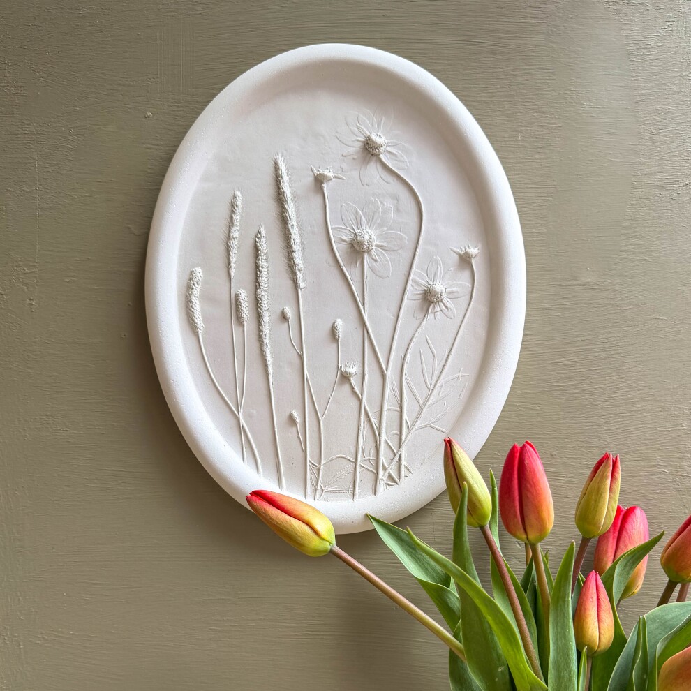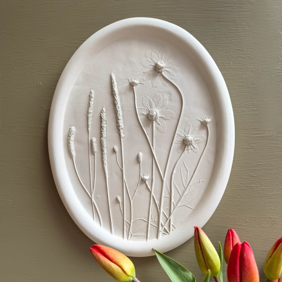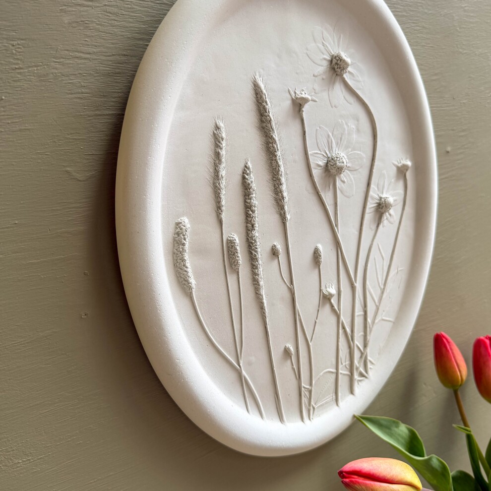 Интерьерное панно, выполненное в технике "Ботанический барельеф" с оттиском настоящих растений с бархатной лентой.