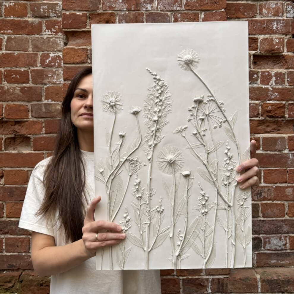 Гипсовое панно с ботаническим барельефом с летними фермерскими цветами