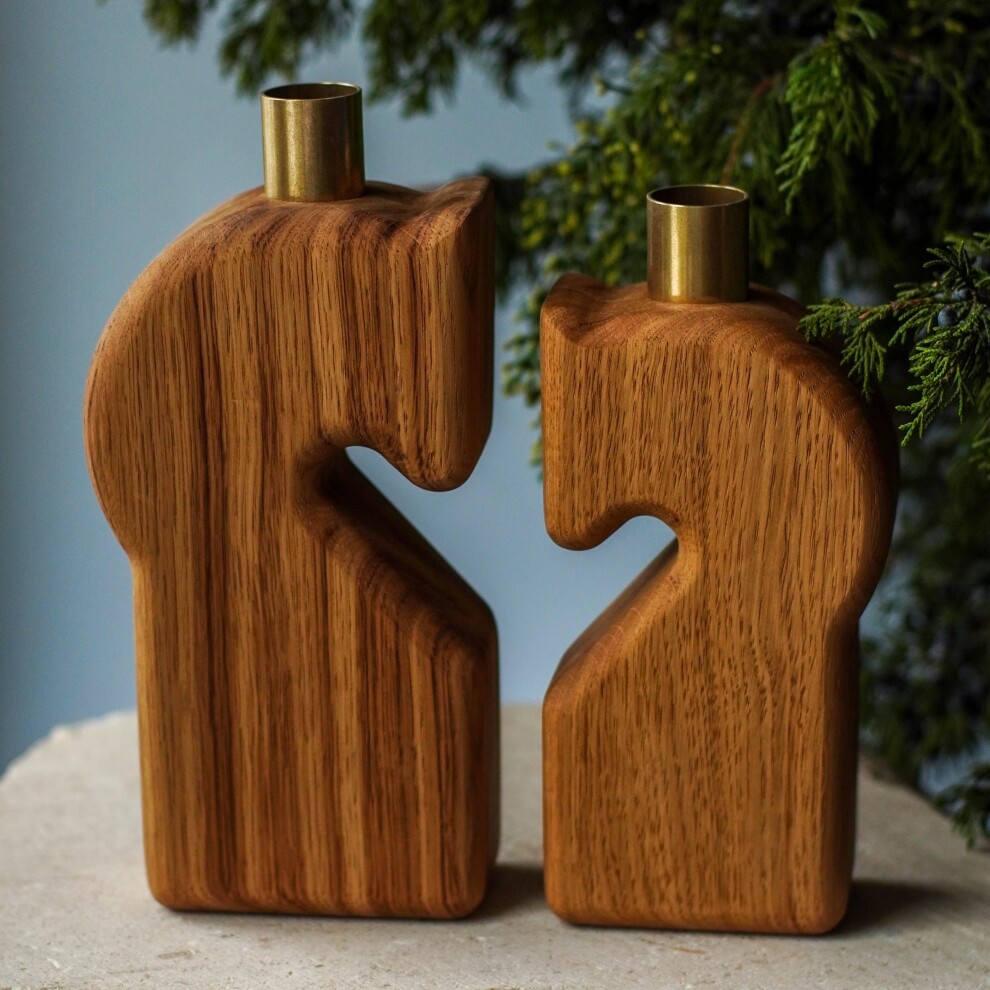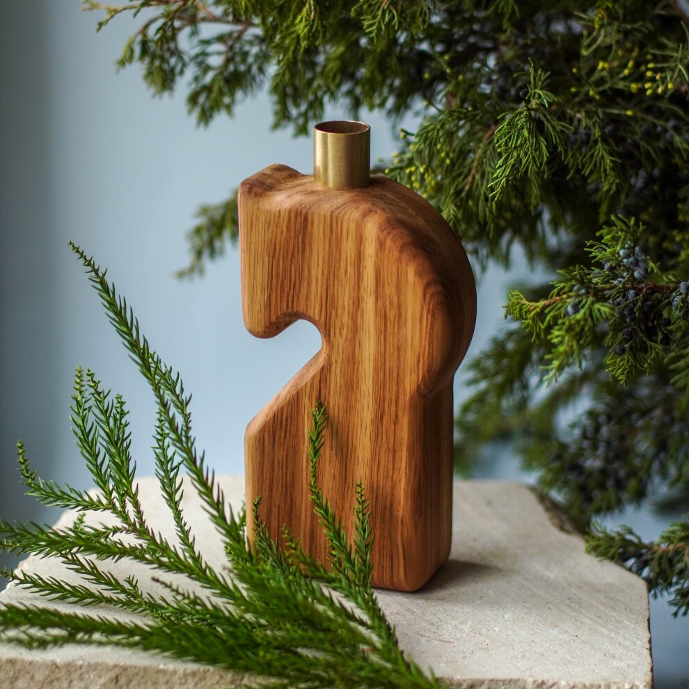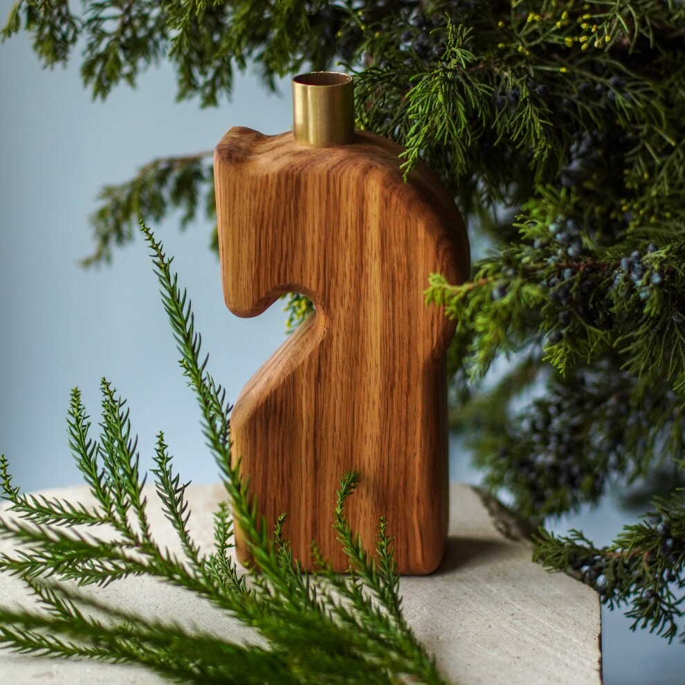 Дубовый фигурный подсвечник в форме коня.