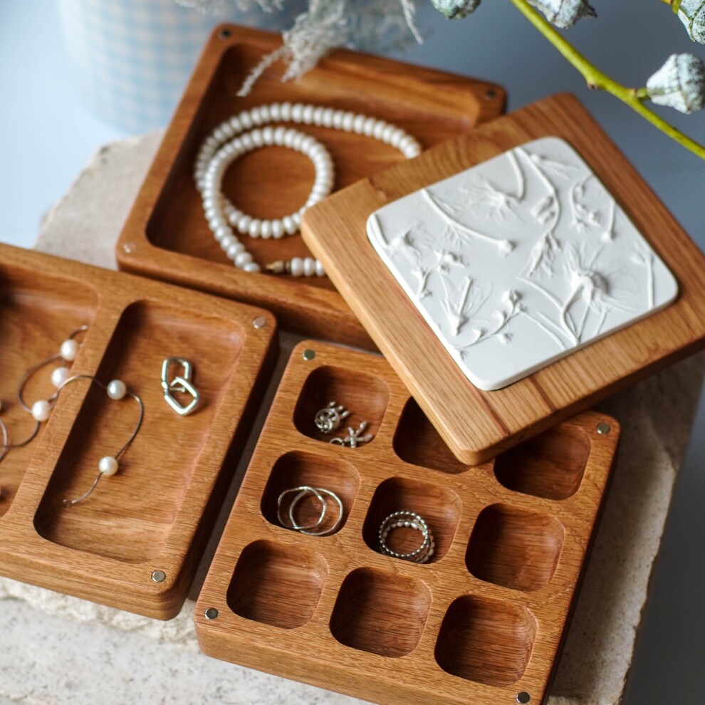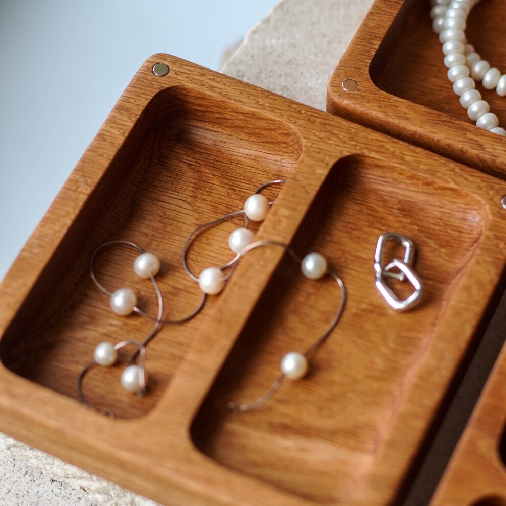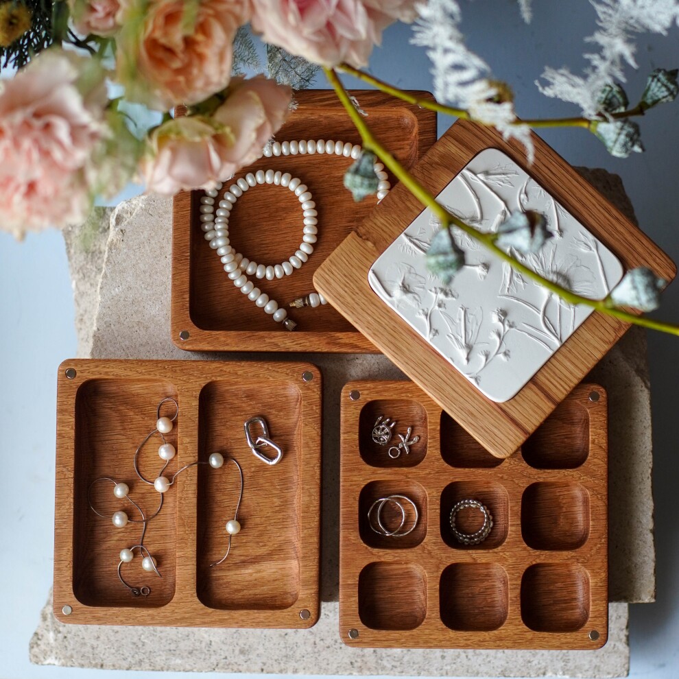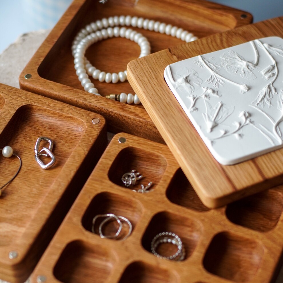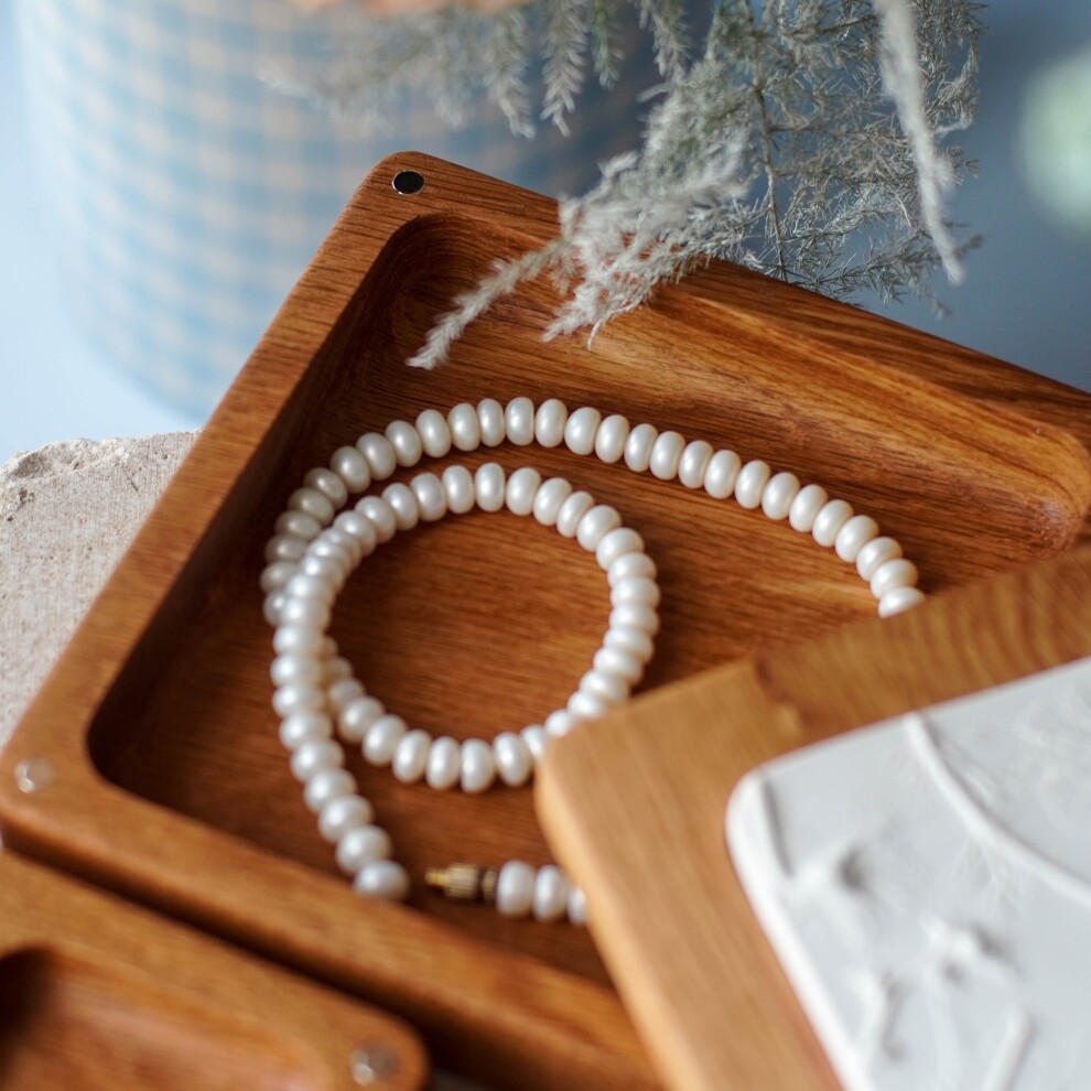 Шкатулка для украшений выполнена из массива дуба, дерево покрыто прозрачным гипоаллергенным маслом. Цвет и узор дерева могут отличаться от представленных на фото.