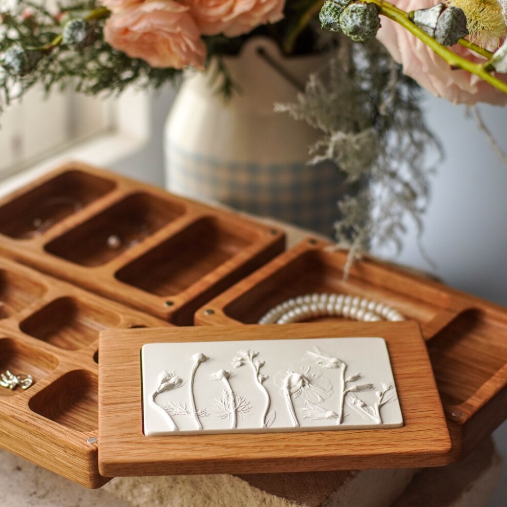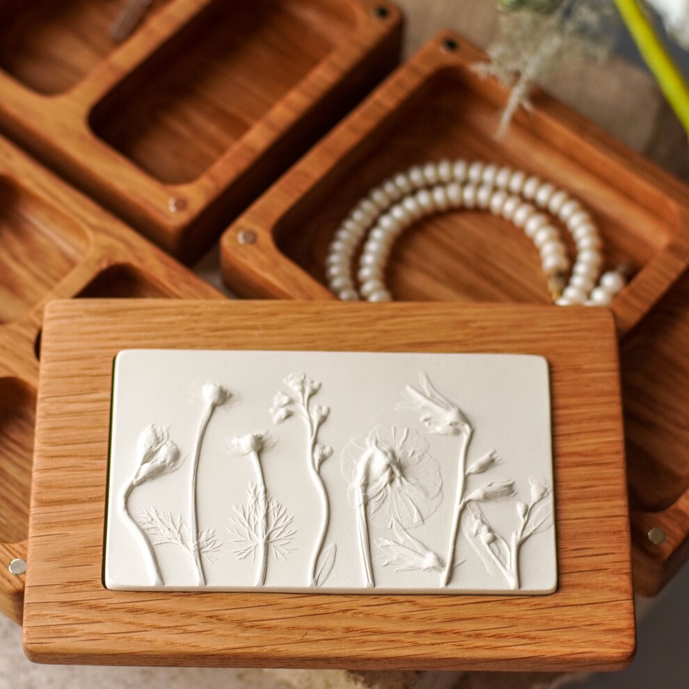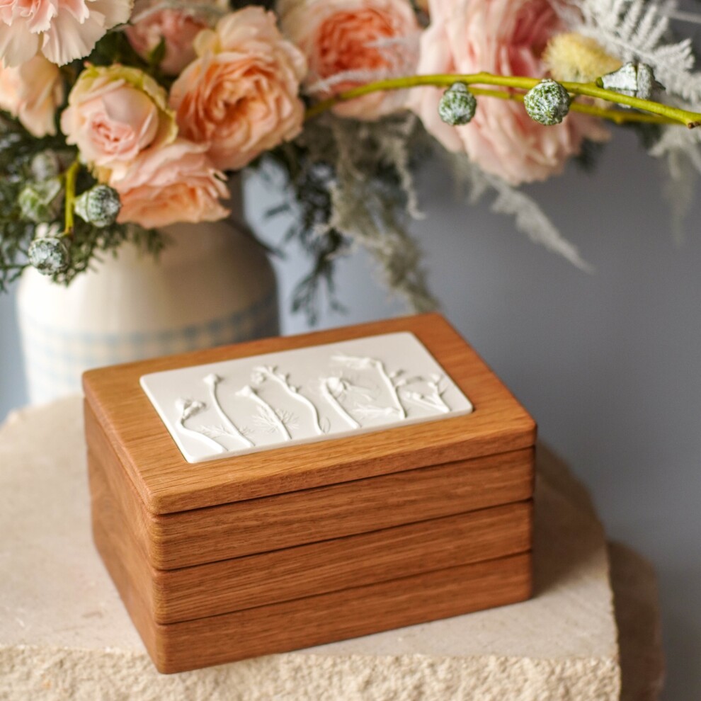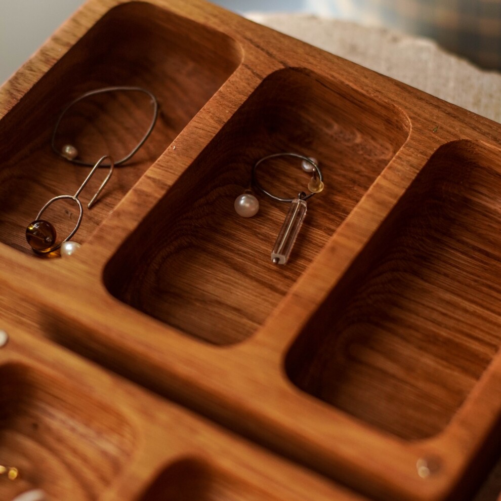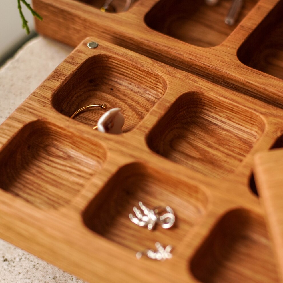 Шкатулка для украшений выполнена из массива дуба, дерево покрыто прозрачным гипоаллергенным маслом. Цвет и узор дерева могут отличаться от представленных на фото.