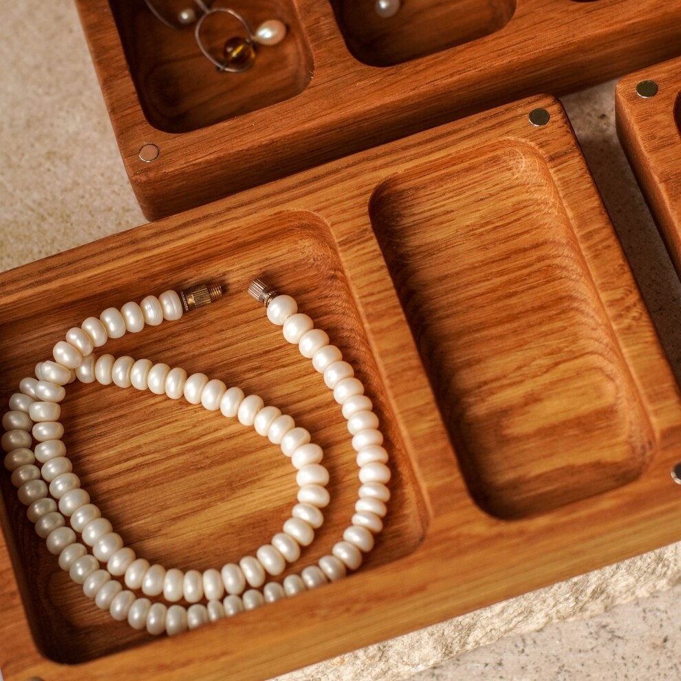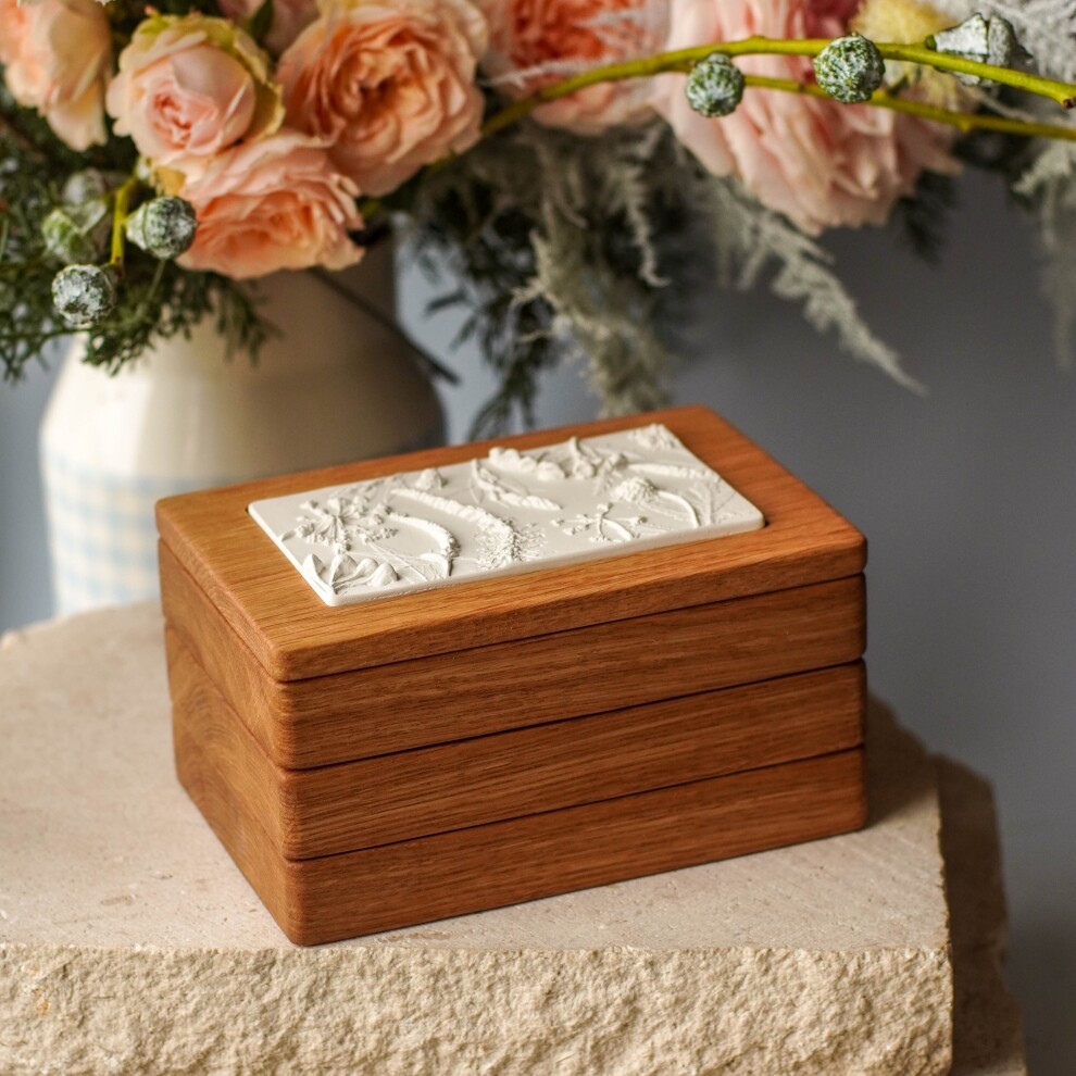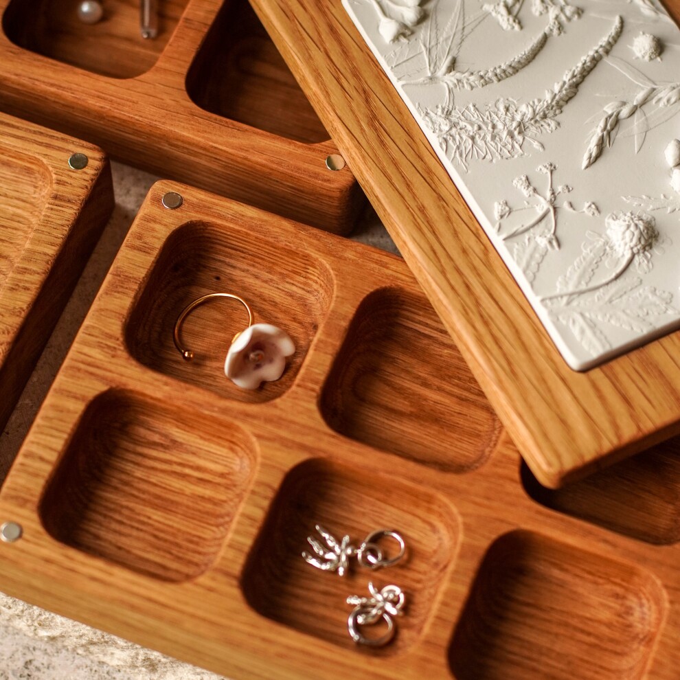 Шкатулка для украшений выполнена из массива дуба, дерево покрыто прозрачным гипоаллергенным маслом. Цвет и узор дерева могут отличаться от представленных на фото.